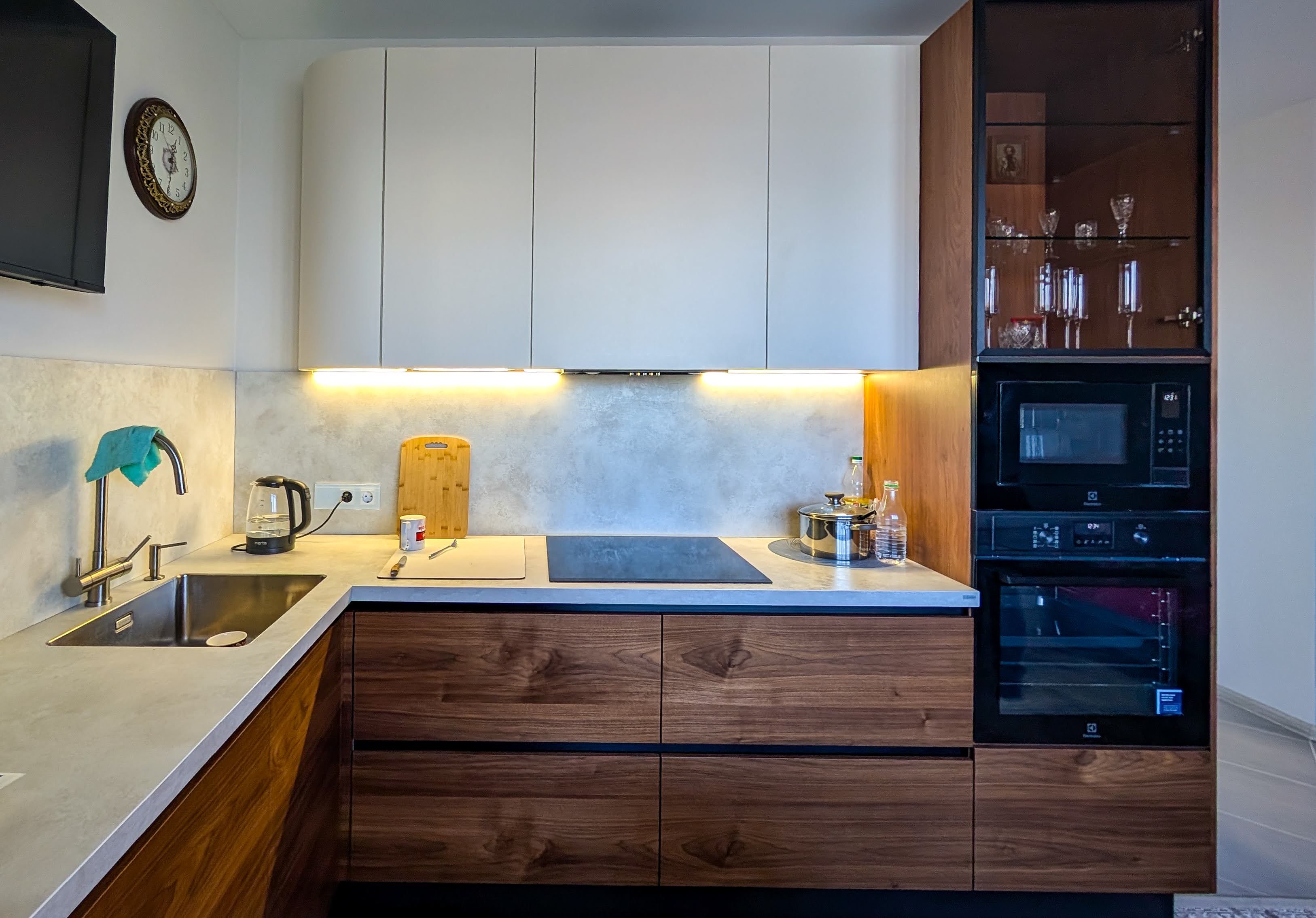 Модель Solo от фабрики Mossman в комбинации с Шпонированными фасадами Ego.