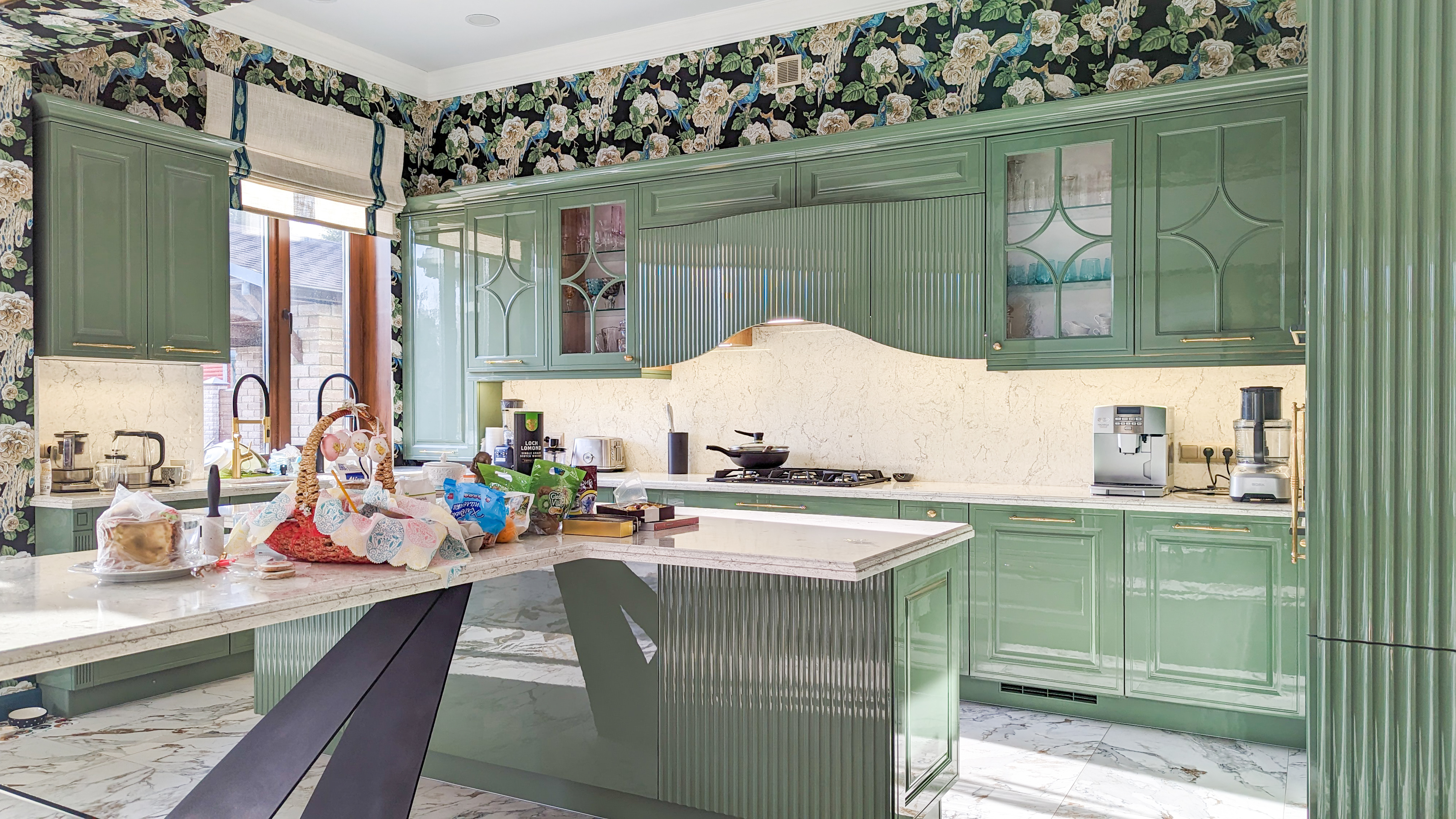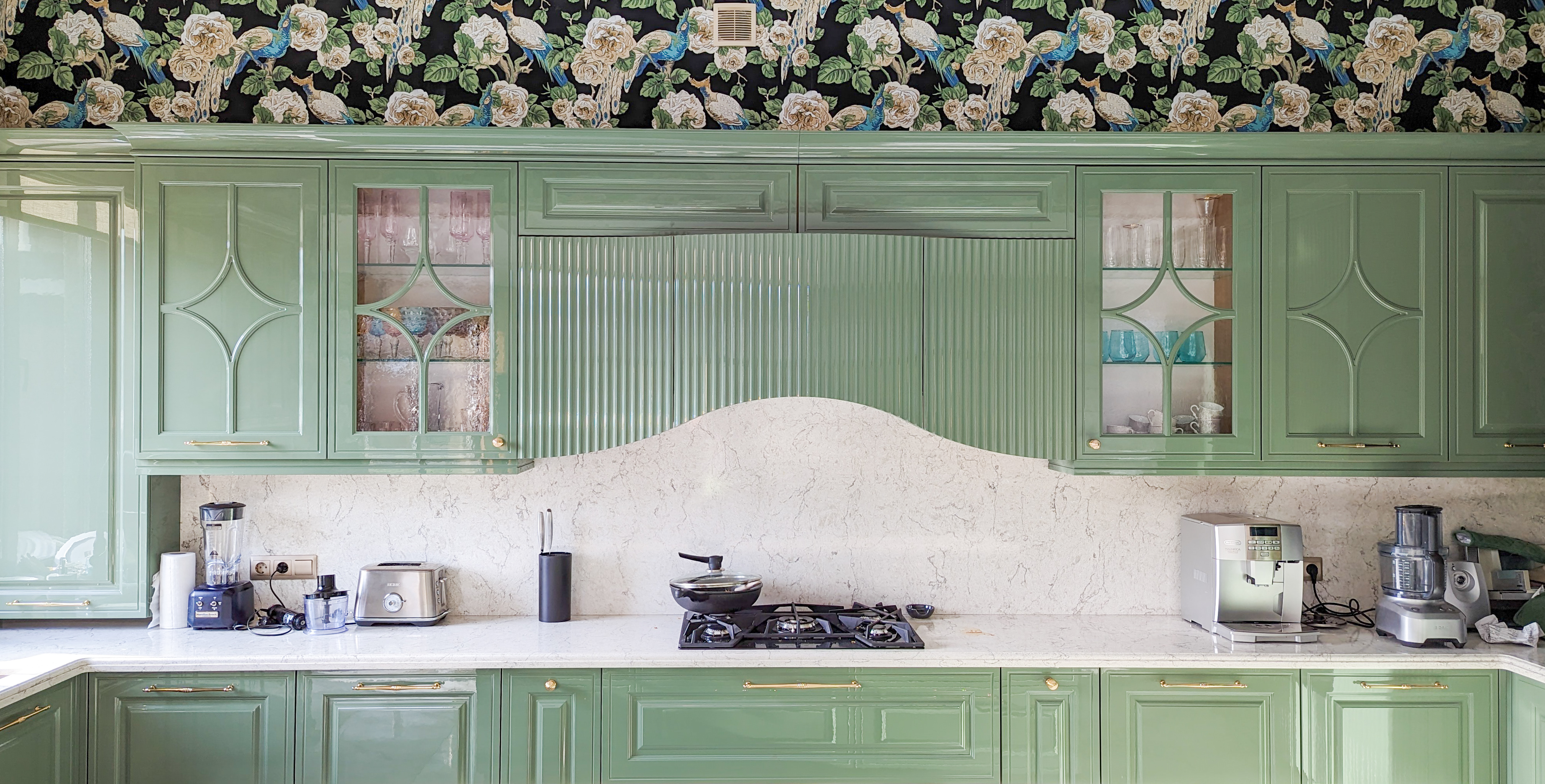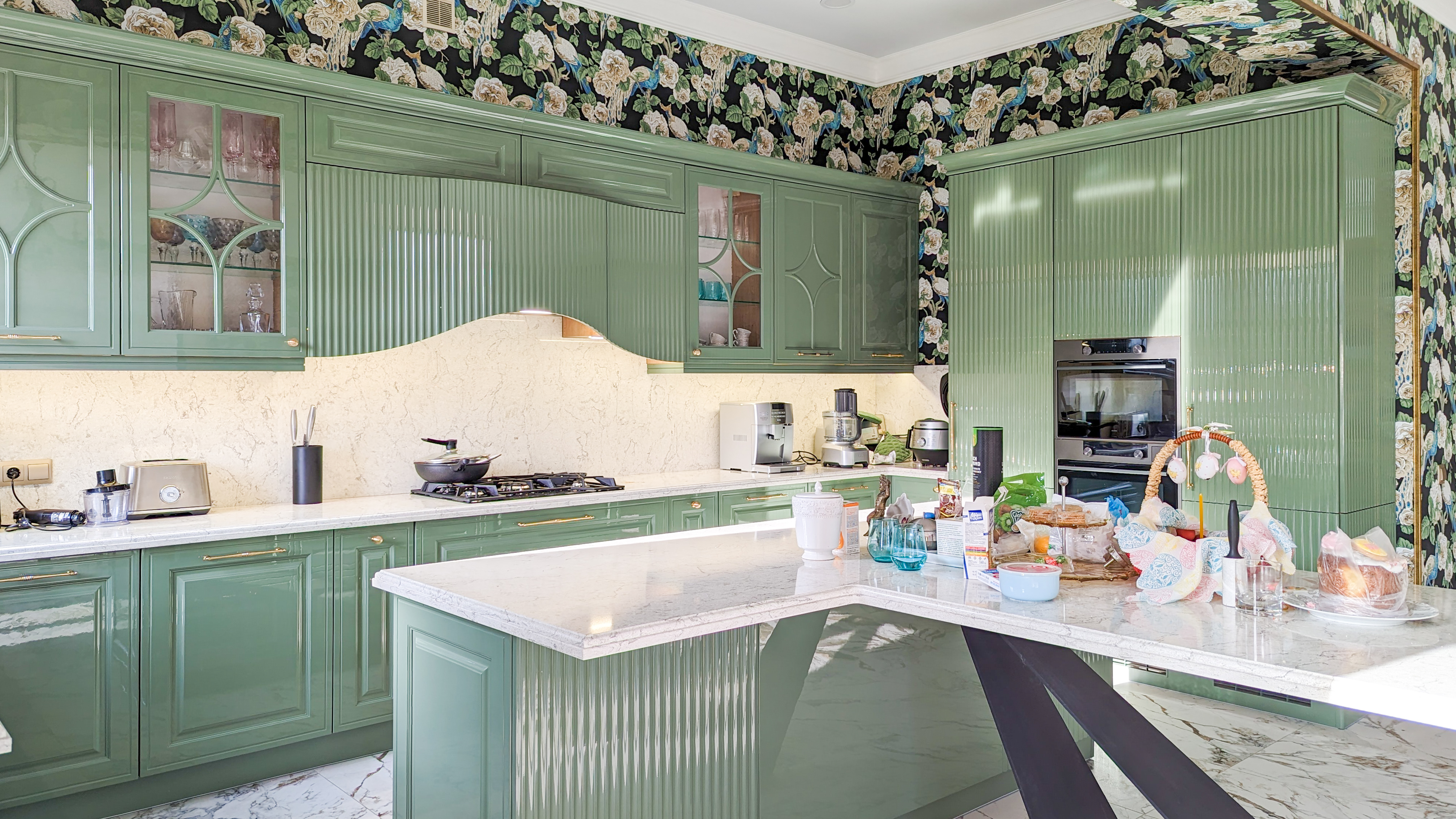 Столешница и стеновая панель - кварцевый агломерат.