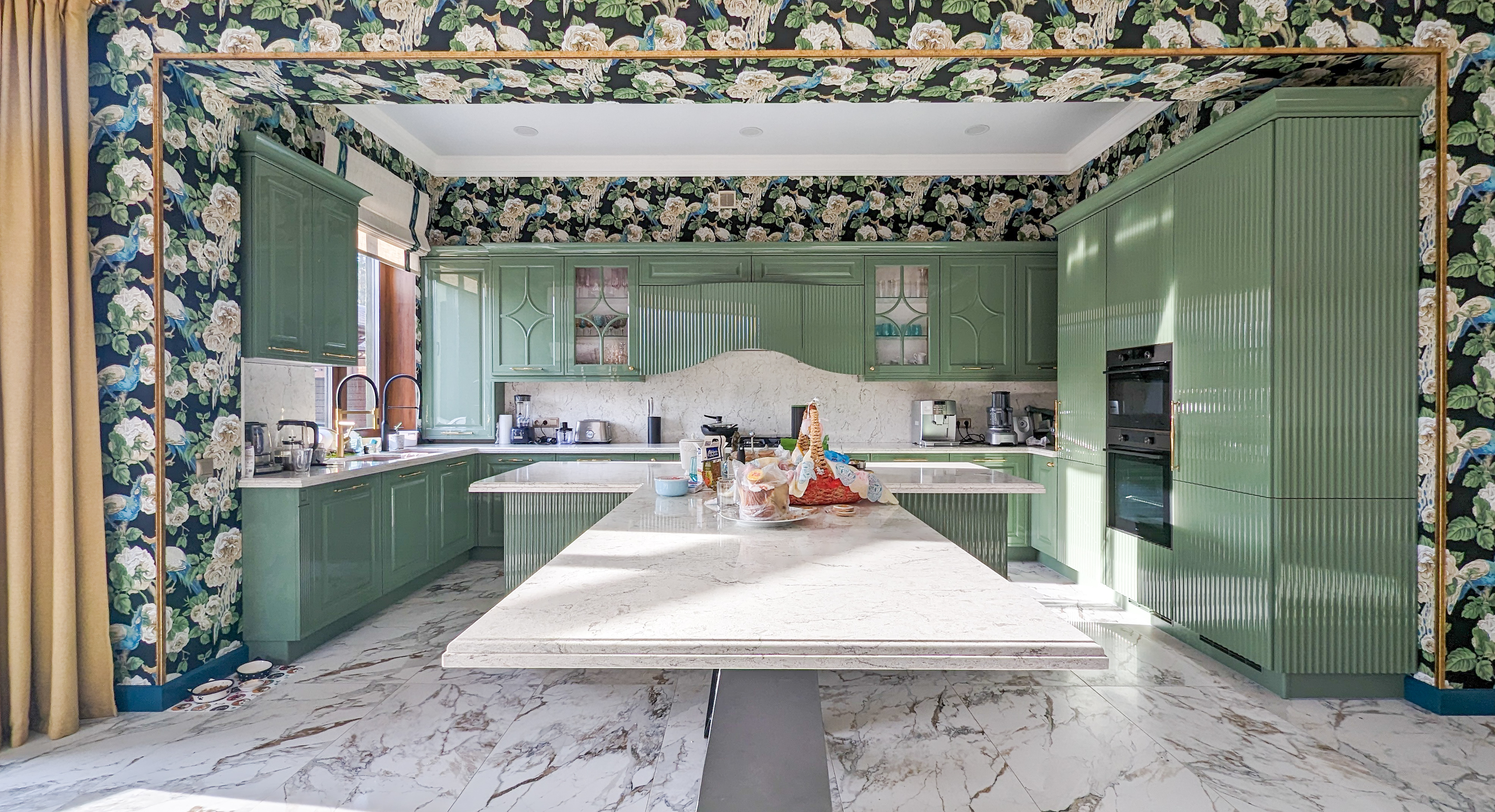 Остров интегрированный с барной стойкой.