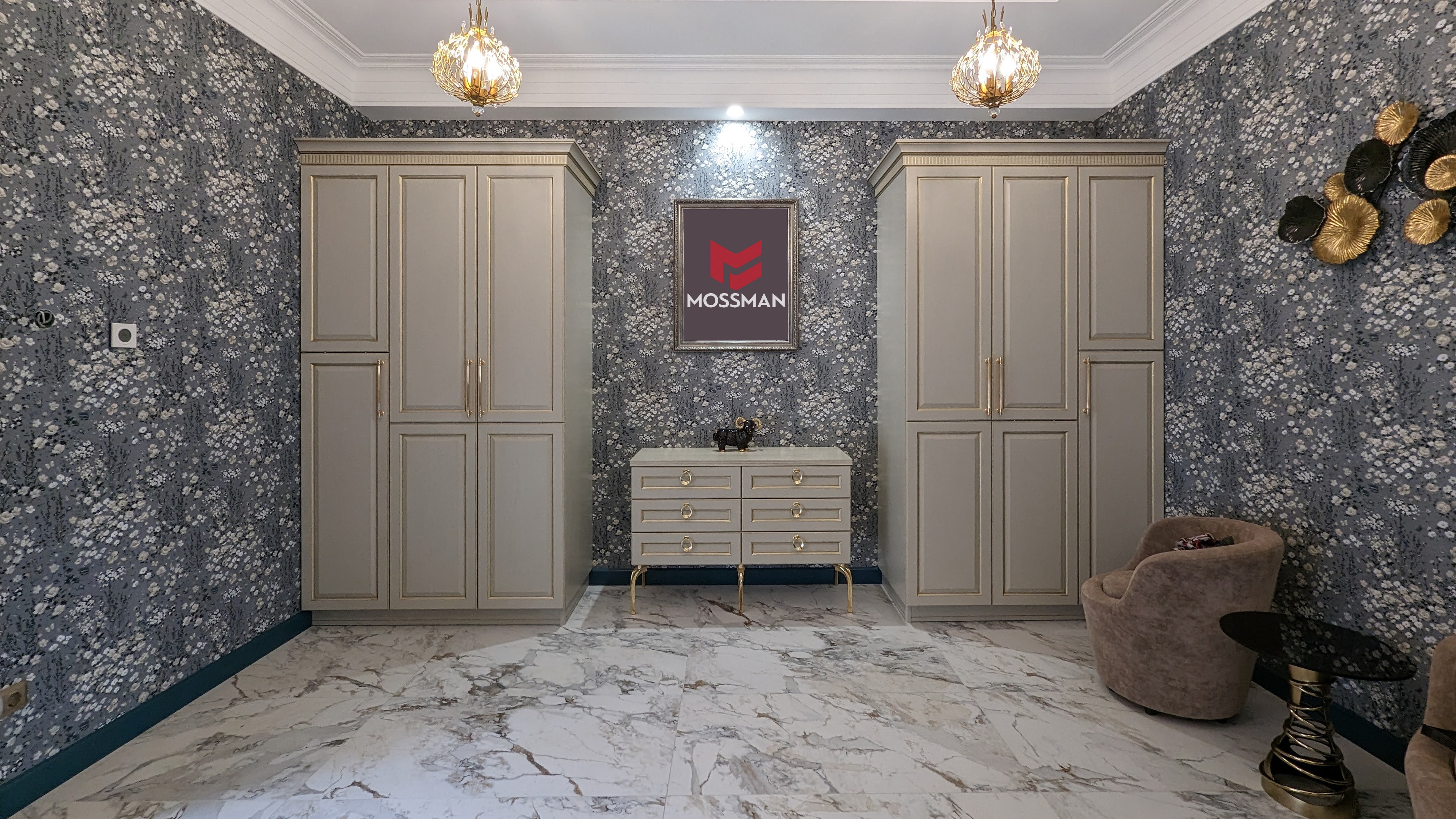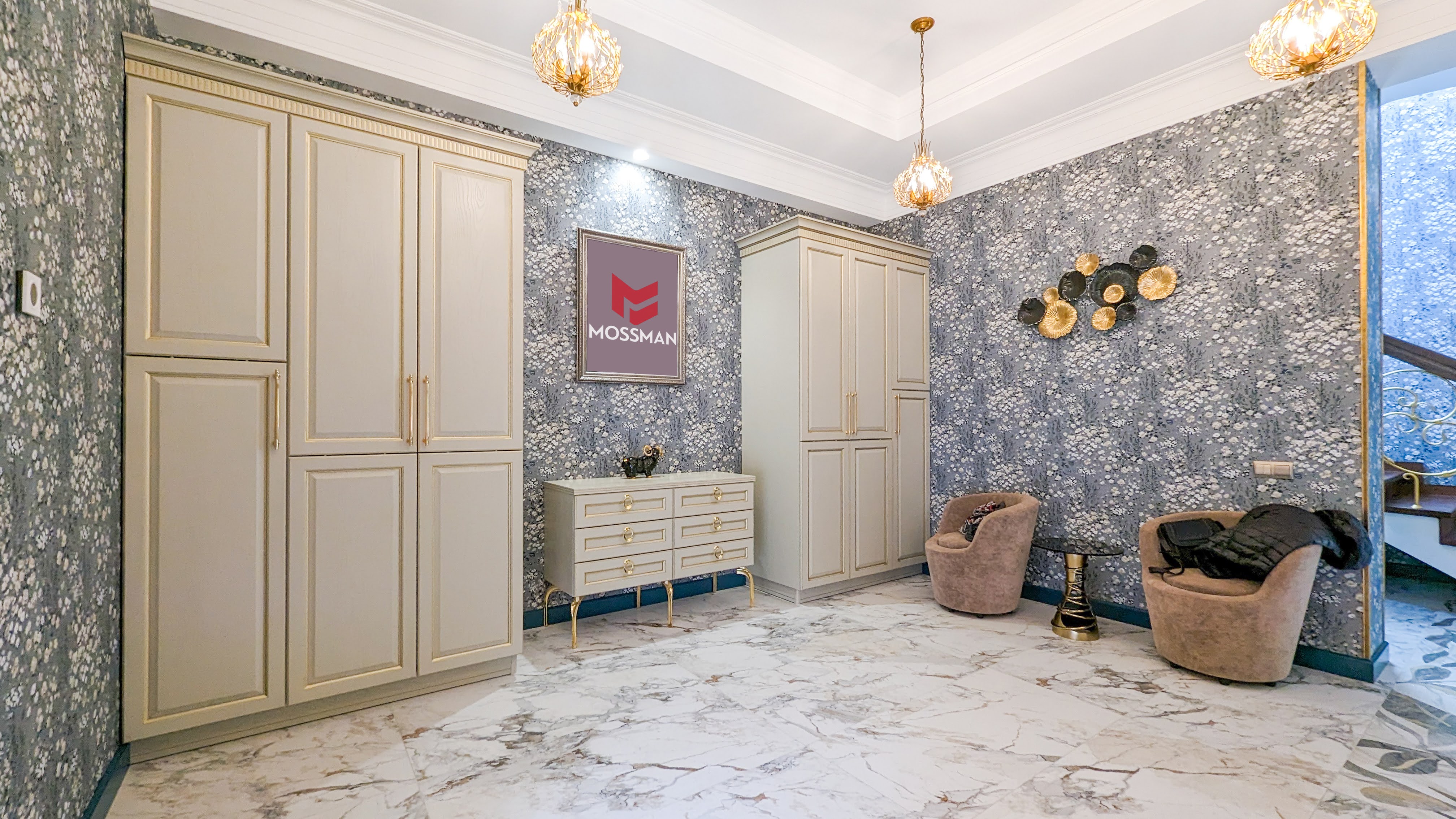 Фасады выполнены из массива ясеня, покрытые эмалью с дополнительной патиной